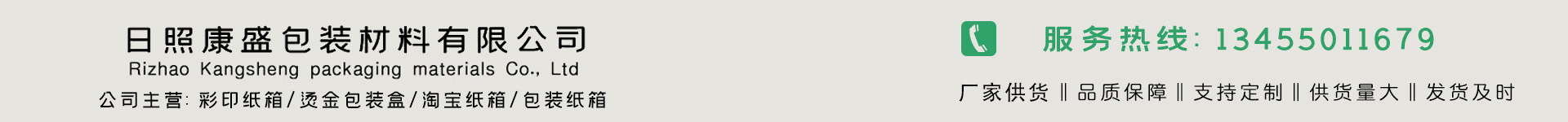 ????日照康盛包裝材料有限公司位于山東半島的尾翼、水上運動之都--日照,山東省日照市經濟開發區重慶路與??诼方粎R處南100米 ,于2009年06月23日在日照經濟技術開發區市場監督管理局注冊成立,注冊資本為2000萬元人民幣。本公司具有一定實力的企業,公司集紙箱 披薩盒,搬家紙箱,彩印紙箱設計、印刷、后道裝訂包裝等自主設計 印刷生產與一體的公司。 公司擁有日本先進的制版系統、印刷機及裝訂設備,富士CTP直接制版,小森對開四色,四開四色、六開四色、對開1+1及多臺單色印刷機,并配置了折頁機、鎖線機、膠裝機、騎訂機及自動過膠機、全自動啤機、燙金機、裱紙機、粘盒機等先進自動化后加工設備。